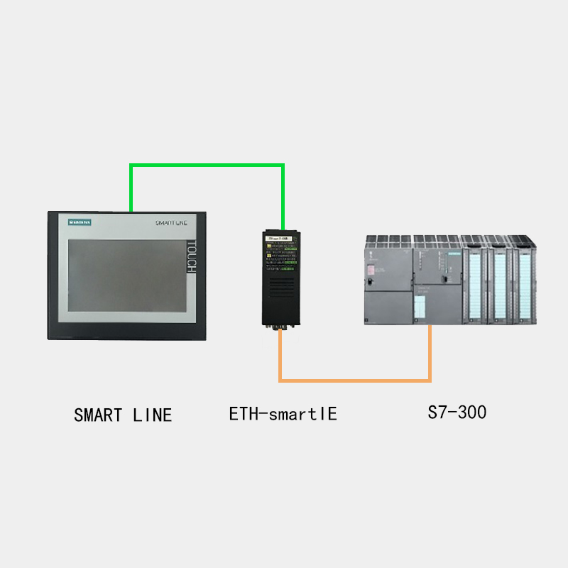 2、单通道ETH-Smart IE适配器仅用于PLC与一台西门子SMART LINE触摸屏通讯,如果想同时连接多个SMART LINE触摸屏,请使用另一款ETH-MPI(Smart IE)以太网转换器。
